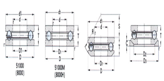 | Bearing no. | d | D | T | Mass(KG) | Bearing no. | d | D | T | Mass(KG) |